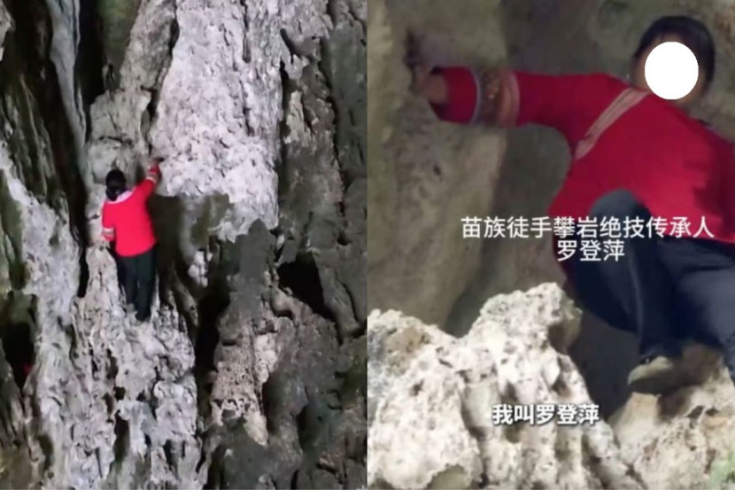 Wanita dikenali sebagai Luo Dengpin yang berasal dari Guizhou, China itu merupakan satu-satunya wanita yang masih mempraktikkan tradisi purba Miao, iaitu memanjat dengan 'tangan kosong'.