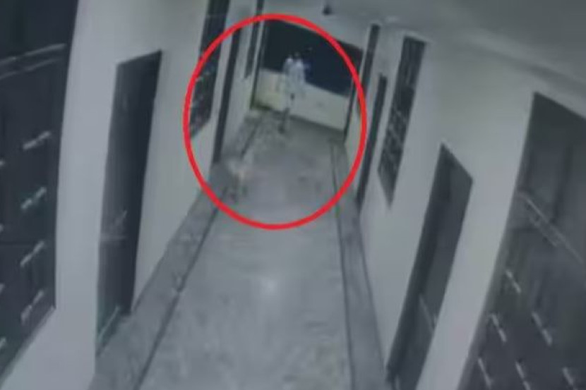Menerusi rakaman kamera litar tertutup (CCTV) pada Ahad, mangsa dilihat sedang bermain dengan seekor anjing di kawasan koridor.