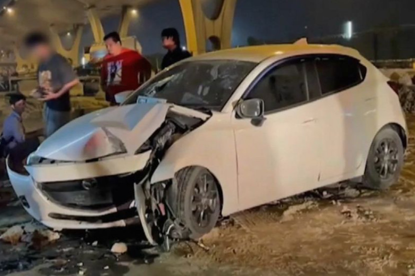 Malangnya, pemandu berada dalam keadaan mabuk sebelum kereta yang dipandu hilang kawalan lalu merempuh penghadang jalan.