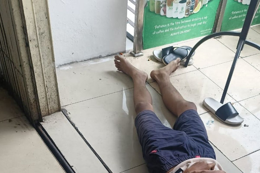 Mangsa dikatakan menyentuh pemegang pintu kedai ketika keluar sebelum tiba-tiba rebah di hadapan premis.