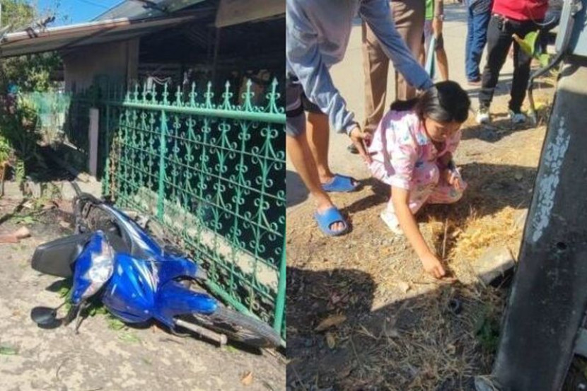 Sekeping foto menunjukkan gadis itu terduduk sambil menangis di lokasi kejadian.