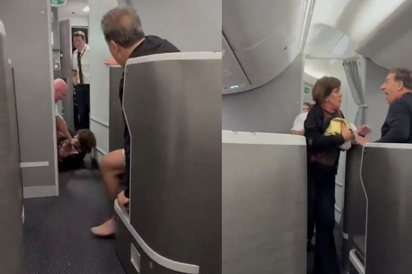 Difahamkan, dia yang ditolak pramugara ke atas lantai sempat mengugut untuk menendang kemaluan mereka dalam cubaan meloloskan diri.