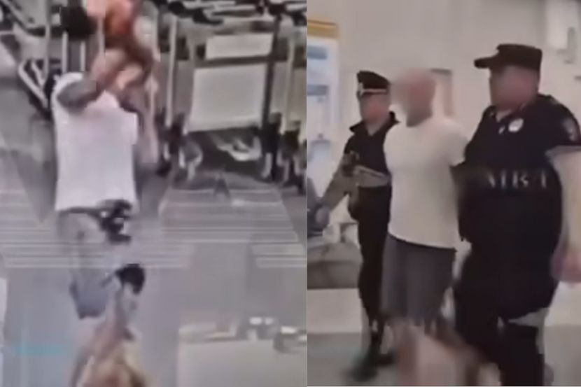SATU insiden mengejutkan berlaku di sebuah lapangan terbang apabila seorang lelaki tiba-tiba menghempas seorang budak lelaki berusia 18 bulan dengan ganas ke lantai.