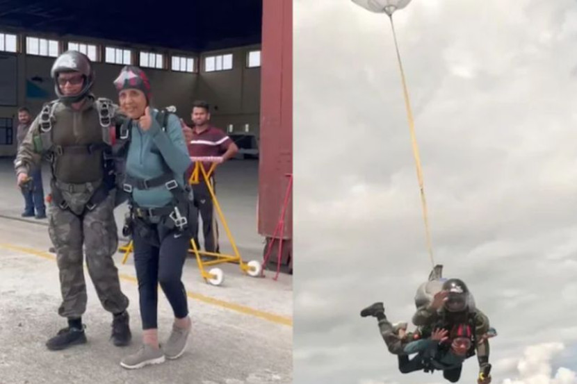 Dr Shraddha Chauhan melakukan lompatan berani itu dari ketinggian 10,000 kaki sempena hari lahirnya yang ke-80.