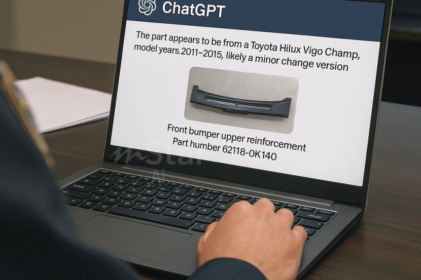 ChatGPT langsung memberikan jawapan terperinci dengan menyatakan ia berkemungkinan bahagian hadapan bonet atas dari Toyota Hilux Vigo Champ.