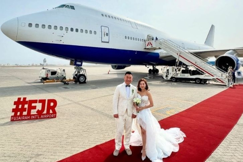 PEMPENGARUH Sam Chui melangsungkan perkahwinan di dalam sebuah pesawat Boeing 747-400 ketika ia terbang pada ketinggian 8,534 meter di ruang udara Emiriah Arab Bersatu (UAE).