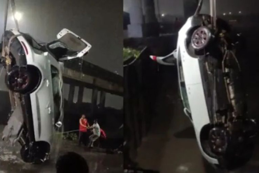 Sebuah video menunjukkan detik pasukan penyelamat menarik keluar kereta milik wanita tersebut dari dalam air, turut tular di media sosial. -Agensi