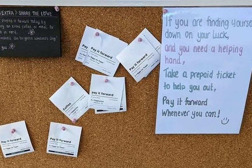 Hasilnya, mereka memperkenalkan papan 'pay it forward' di kafe berkenaan, yang dipenuhi resit minuman atau makanan prabayar oleh pelanggan tetap.