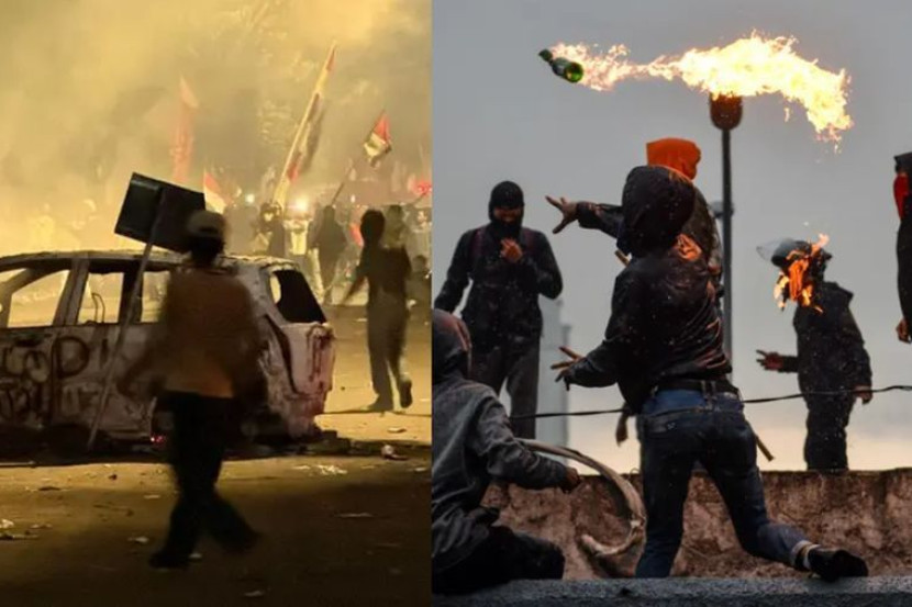 Mereka turut bertindak ganas dengan merosakkan pos polis, membakar kenderaan awam serta bangunan DPRD. -Agensi