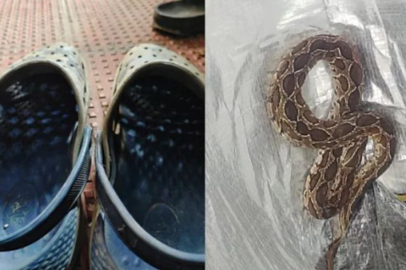 Seorang ahli keluarga ternampak reptilia berkenaan bersembunyi di dalam selipar dan segera memaklumkan kepada bapa mangsa.