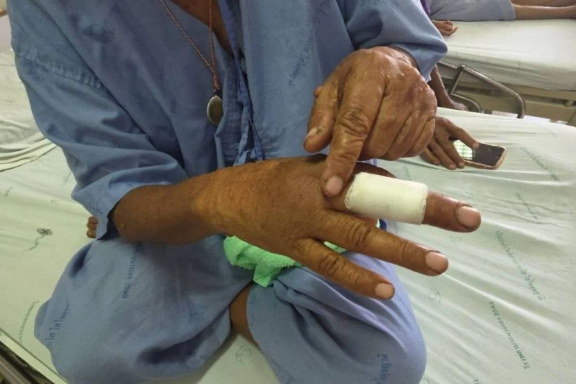 Mangsa, Chalaem Pinsuwan, 62, berkata dia melihat beberapa biji bebola putih berada di bawah daun.