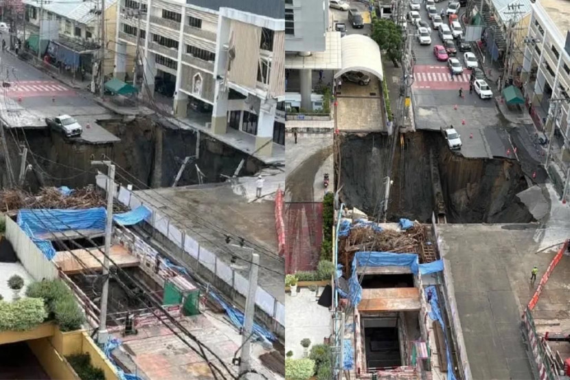 PENDUDUK dan pengguna jalan raya di Dusit, Thailand dikejutkan dengan kejadian tanah mendap di Jalan Samsen pada pagi Rabu.