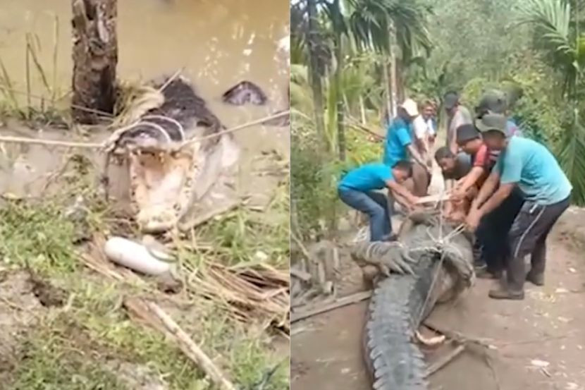 Selepas menyedari kehadiran reptilia berkenaan, kira-kira 20 penduduk bergotong-royong untuk menangkapnya menggunakan tali dengan usaha itu akhirnya berjaya selepas beberapa jam.