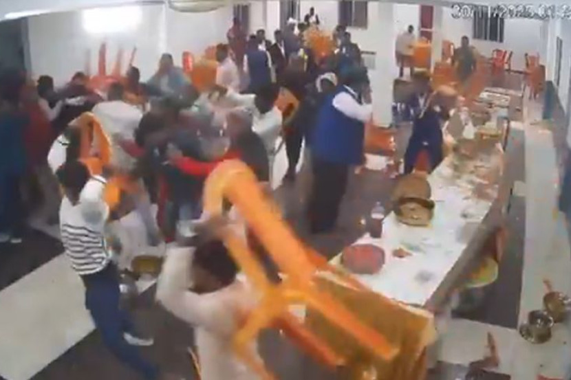 Rakaman kamera litar tertutup (CCTV) yang tular di platform X menunjukkan tetamu dari kedua-dua pihak saling membaling kerusi plastik, pinggan mangkuk malah ada yang bertumbuk hingga keadaan dalam dewan kucar-kacir.