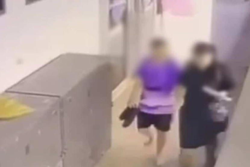 Rakaman CCTV menunjukkan kanak-kanak autistik berkenaan (kiri) diiring oleh guru terbabit dalam keadaan kesakitan. -Foto Thaiger