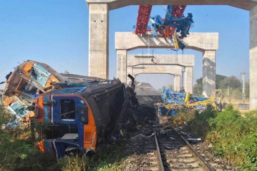 SEKURANG-KURANGNYA 22 orang terkorban manakala 64 lagi cedera selepas sebuah kren pembinaan tumbang dan menghempap kereta api yang sedang bergerak di timur laut Thailand, pada Selasa.Dalam kejadian itu, kren berkenaan dilaporkan menghempap salah satu gerabak, menyebabkan kereta api terbabit tergelincir dari landasan sebelum terbakar seketika. Menurut pihak berkuasa, kereta api tersebut dalam perjalanan ke wilayah Ubon Ratchathani.Berdasarkan pelan tempat duduk, seramai 195 penumpang dan kakitangan berada di dalam kereta api berkenaan ketika kejadian berlaku.Namun identiti penumpang dan kakitangan yang terlibat masih dalam proses pengesahan.Kren terbabit difahamkan sedang digunakan dalam kerja pembinaan projek kereta api berkelajuan tinggi di daerah Sikhio, wilayah Nakhon Ratchasima, kira-kira 230 kilometer di timur laut Bangkok. -Agensi