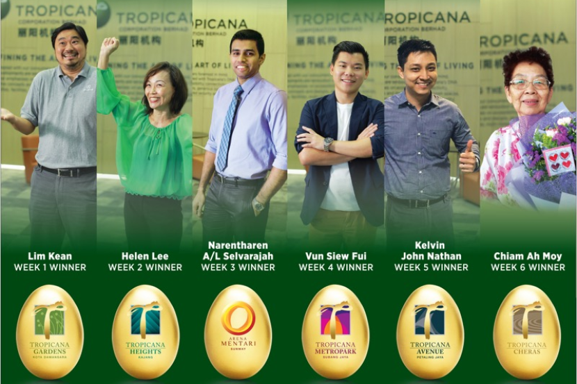 PETALING JAYA: Selepas beberapa minggu membuat pemilihan, akhirnya pemaju hartanah, Tropicana Corp Bhd mengumumkan enam pemenang Kempen Pelaburan Impian Tropicana.