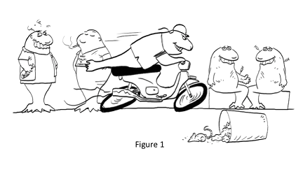 Terdapat dua unsur-unsur yang boleh kita ketahui dari ruang atau persekitaran awam iaitu tanda-tanda gangguan fizikal dan gangguan social (physical and social disorder). Kedua-dua jenis gangguan ini merupakan isyarat yang kita boleh lihat dengan jelas. Unsur-unsur ini yang kita anggap sebagai ancaman, menjejaskan cara pemikiran, perasaan dan kelakuan kita. Sebagai contoh yang ditunjukkan pada Rajah 1, kita boleh melihat golongan “kutu”, “mat rempit”, penagih dadah dan sampah yang bertaburan di atas lantai. Situasi itu menunjukkan ketenteraman sosial dan fizikal dalam masyarakat kita yang telah terjejas.