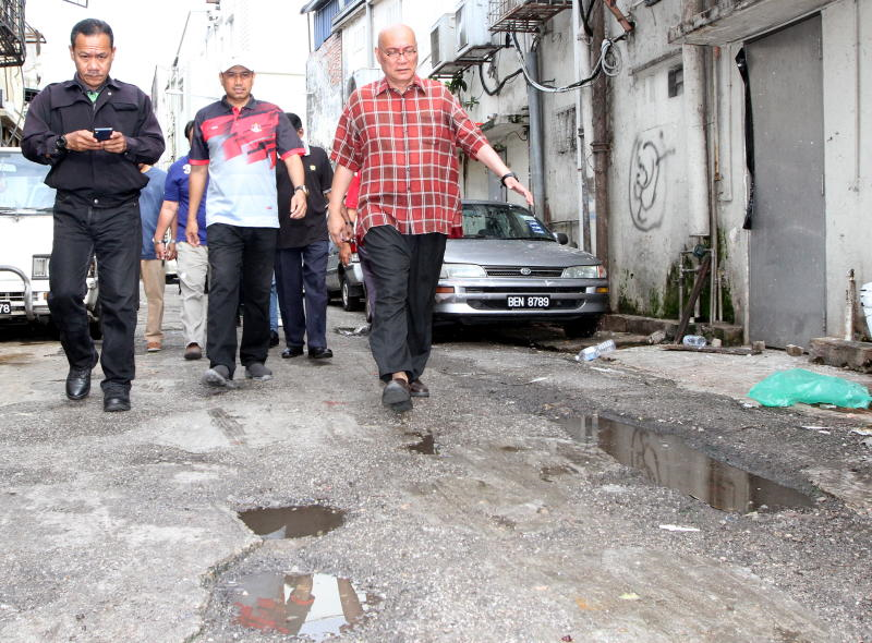 Nor Hisham melakukan tinjauan di lorong belakang Pasar Karat di Jalan Pasar Pudu.
