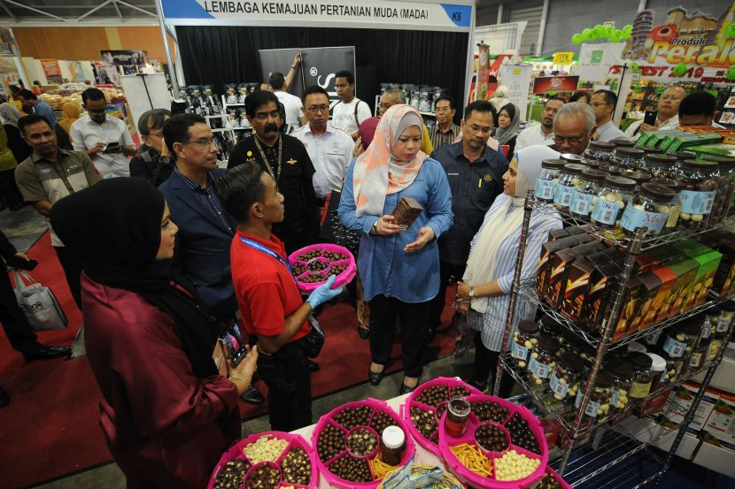 Dr Mahathir melihat kek keju di gerai Zowa Cheese Cake semasa melawat tapak Karnival Usahawan Desa (KUD) Putrajaya 2019 di Presint 3, Putrajaya pada 19 Oktober lalu. Turut hadir, Rina. Foto Bernama