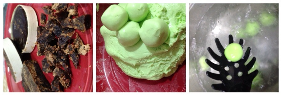 4. Panaskan air hingga mendidih. Masukkan bebola pulut.