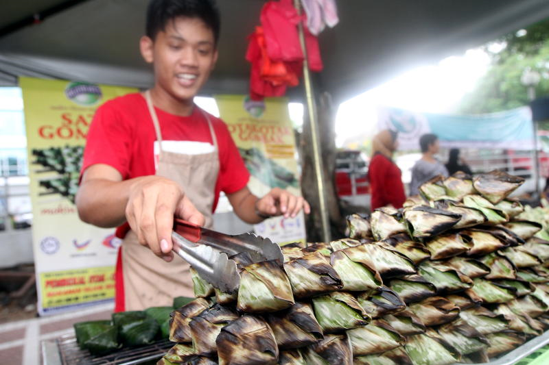 Zakri sedang memanggang pulut udang di tapak bazar Ramadan TTDI