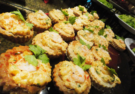 Antara lauk pauk yang dihidangkan seperti siput sedut masak lemak cili api, nasi briyani De Palma bersama kismis dan gajus, kari kepala ikan, sambal udang galah petai, ulam kampung bersama sambal belacan dan tempoyak.