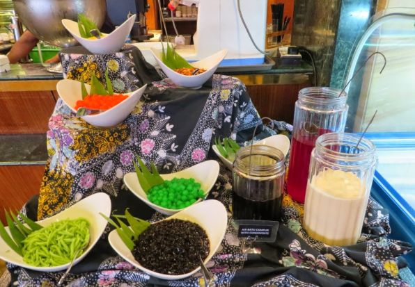 Di sudut pencuci mulut, Pengat Nangka, Bubur Pulut Hitam, Ais Kacang dan Bubur Cha-Cha selain pelbagai jenis kuih-muih tradisional dan pastri Perancis.