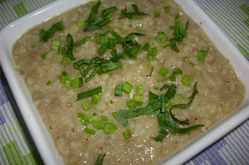 Campurkan beras, daging, halia dan serai bersama air secukupnya dan masak hingga beras hancur dan daging empuk.Masukkan kentang bersama lobak merah, lada hitam,garam dan santan. kacau rata dan masak sehingga semuanya lembut.