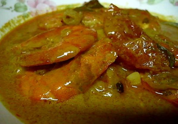 BAGI yang masih terfikir-fikir menu yang ingin dihidangkan untuk rumah terbuka Aidilfitri, apa kata cuba resipi kari udang ini. Makanan laut yang dimasak kari memang sedap. Kuahnya boleh dicicah roti atau dimakan dengan nasi putih. Bahan-bahan: Udang 5 ulas bawang merah 3 ulas bawang putih 1 paket rempah kari udang 1 pelepah daun kari 4 batang cili padi Garam Gula Cara penyediaan: Panaskan minyak dan tumis bawang merah dan bawang putih yang dihiris. Masukkan pula cili padi yang dipotong kecil. Kemudian masukkan rempah kari dan kacau dengan cepat supaya rempah tidak hangus. Setelah berbau wangi, masukkan sedikit air. Masukkan daun kari dan terus dikacau sehingga rempah terbit minyak. Setelah itu, baru masukkan santan. Apabila santan mendidih, baru dimasukkan udang dan masak sehingga udang masak. Akhir sekali, masukkan garam dan gula. Sesuaikan rasa dan bolehlah ditutup api dan sedia untuk dihidangkan.