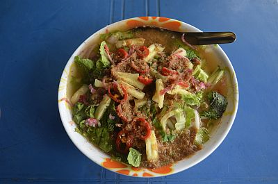 Semasa Abang Fen asyik melayan persoalan yang bermain di fikiran, laksa dipesan sudah berada di depan mata, tersedar pun kerana baunya yang harum.