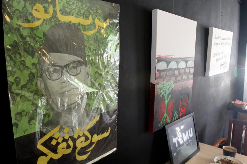 Hiasan seni di dinding Kafe Temu sederhana dan tidak sarat.