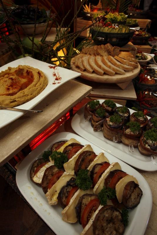 Selain itu, turut disediakan Hummus (masakan kacang kuda), Baba Ganoush (masakan terung), serta Shish Kebab (daging panggang) serta hidangan lazat lain seperti Makdous (terung sumbat), Kabsa (makanan laut yang dipanggang) dan juga Fattoush (roti pita salad).