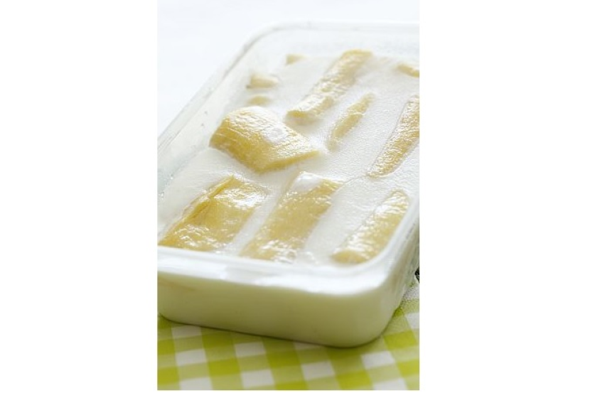 1. Satukan santan dengan garam dan kacau sebati. Tuangkan ke dalam bekas berisi tapai. Sejukkan semalaman.
