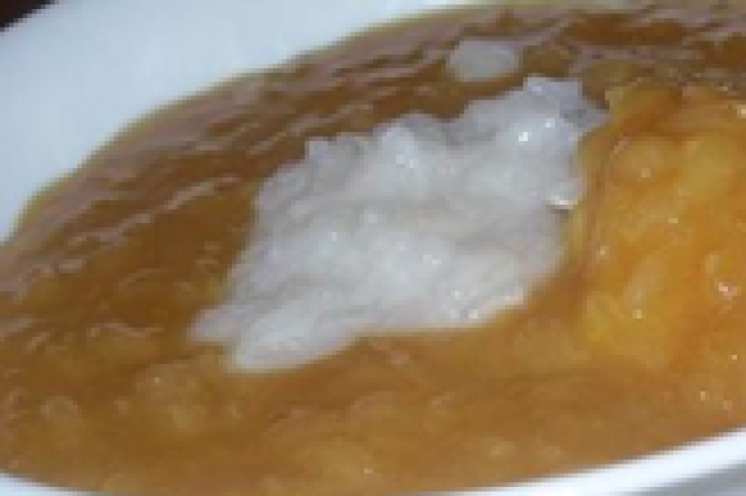 Apabila menghidangkan letakkan sesudu bahagian putih diatas bubur tersebut.