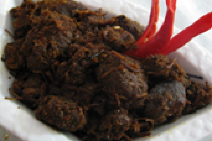 Bila daging nampak empuk, masukkan semua baki kerisik dan kelapa kepingan kecil yang disangai tadi, kacaukan. Masakkan rendang tok ini biar betul-betul kering.