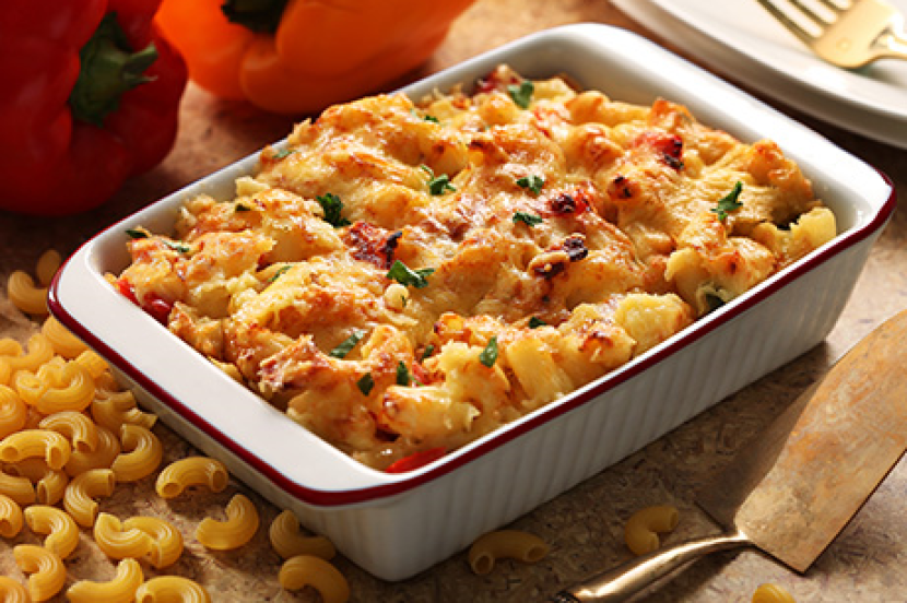 3) Taburkan keju Mozzarella di atas makaroni dan bakarnya pada suhu 180 darjah Celsius selama 15 minit atau sehingga keju itu cair dan bahagian atas hidangan menjadi warna emas keperangan.