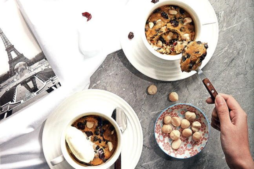 4- Tuang adunan ke dalam mug, cawan atau mangkuk kecil.