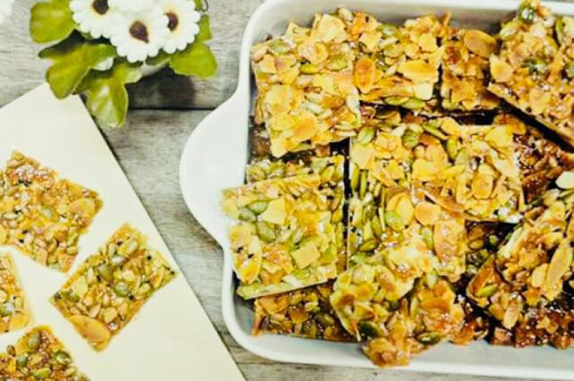 BISKUT Crunchy Almond Bar juga dikenali sebagai biskut Florentine. Ia antara biskut yang paling mudah untuk disediakan. Nama florentine diambil dari nama tepung yang digunakan dalam resipi ini. Bahan-bahan: 200 gram tepung Bienetta 150 gram badam keping 80 gram kuaci 80 gram biji labu 20 gram bijan hitam Cara penyediaan: - Badam dan biji labu di bakar dengan suhu 160 darjah celcius selama 10 minit, kuaci selama 5 minit. Biarkan sejuk. - Satukan semua bahan dan gaul rata. - Panaskan ketuhar pada suhu 160 darjah celcius. Alas tray dengan baking paper. - Tuangkan adunan ke dalam tray. Ratakan. - Bakar selama 10 minit. *Kredit Zaky Mat Ali MAHN