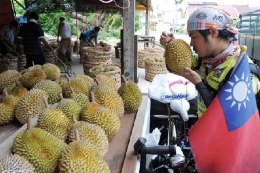 GEORGE TOWN: Durian dari Balik Pulau terbukti terlalu sedap sehinggakan Chang Chiao-Chung, penunggang basikal dari Taiwan yang sedang menjelajah dunia, 'terpaksa' singgah untuk menikmati keenakan raja buah Malaysia itu.