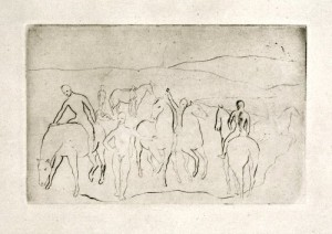 Satu lagi lukisan yang menarik adalah sentuhan Francisco Masson (1864-1924) yang dihasilkan pada 1900. Berjudul Riders and Greyhound dengan teknik "etching" dan "aquatint". Ia juga satu paparan zaman yang mudah difahami.