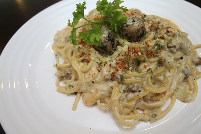 “Mi udang tiga ekor dan nasi goreng Mak Udoh, sempena resipi emak saya, paling disukai ramai. Juga ada menu kuey teow Singapura dan mi goreng hailam. Bagi makanan barat yang popular pula antaranya ialah Alverta Fish n Chop, Red Devil Spaghetti, Aglio Olio, Geffen Beef Carbonara dan Prontera Seafood Carbonara,” kata Harun bercerita.