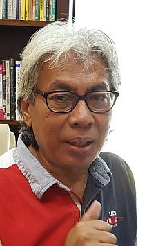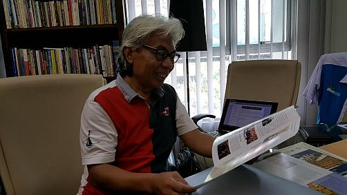 Dr Azahari yang juga dikenali sebagai 'Dr Luv' menunjukkan majalah Oxcel kepada penulis ketika