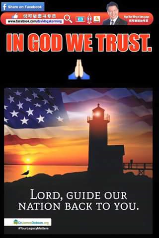 Posting beliau pada 5 Julai memapaparkan imej besar poster evangelis Kristian dengan slogan "In God We Trust", berlatarbelakangkan bendera Amerika, rumah api, imej tangan berdoa dan tajuk yang besar dengan berkata: "Lord, Guide Our Nation Back To You" di bawahnya.