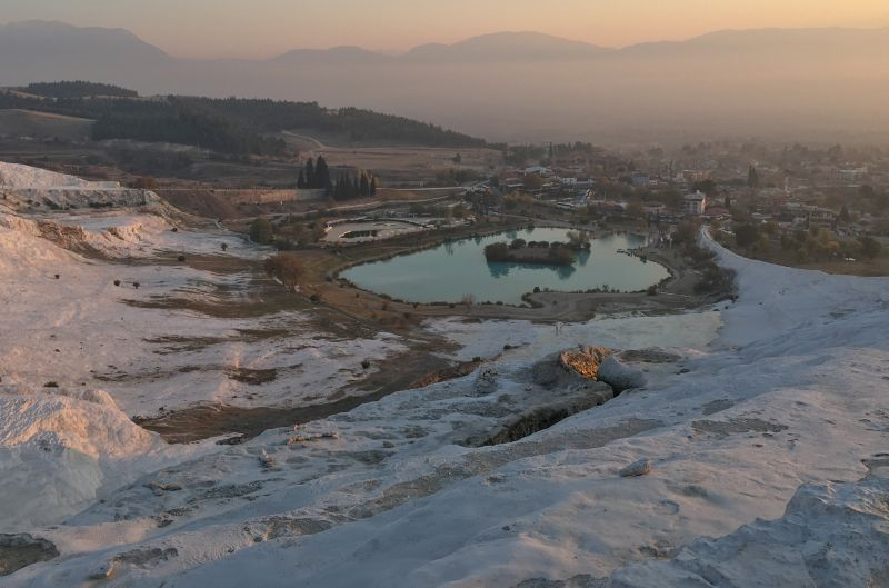 Kami meneruskan perjalanan ke Pamukkale, kawasan pergunungan terkenal dengan tarikan Cotton Castle. Ia adalah teres-teres kolam air panas berwarna putih di lereng bukit, di mana kami berpeluang untuk merasai kenyamanan air panas dengan merendamkan kaki.