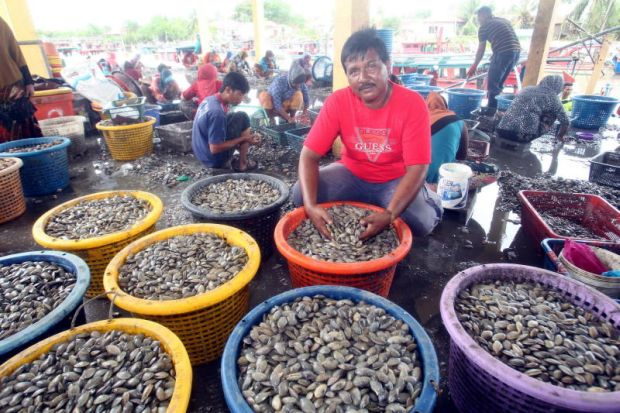 Dia berkata, nelayan mengaut kerang dari matahari terbit sehingga terbenam.