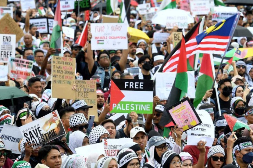 Terdahulu, salah seorang peserta himpunan menyuarakan kekecewaan selepas dilabelkan sebagai 'zionis' gara-gara memegang plakad memaparkan wajah Perdana Menteri Israel, Benjamin Netanyahu dengan slogan ‘Netanyahu Penjenayah Perang’.