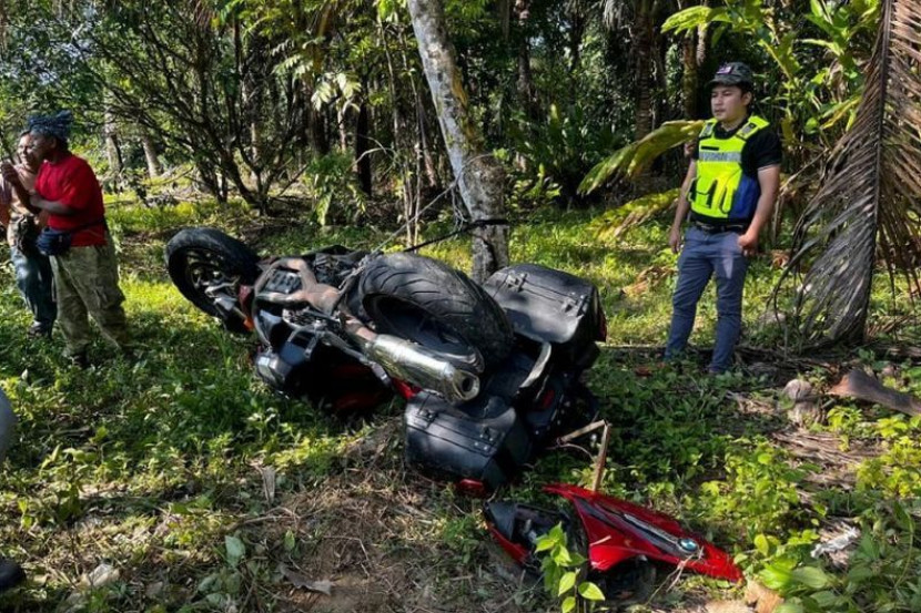 Dalam kejadian pada pagi Jumaat, mangsa, Saharudin Mohd Yusoff, 50 dan isteri, Azilawati Jusoh, 50, menunggang 'superbike' model BMW dari Jeli ke Dabong sebelum terbabas di Kampung Bukit Tok Ali.