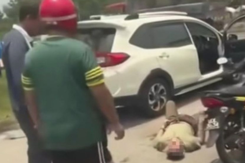 Tangkap layar insiden seorang warga emas rebah dihempuk helmet yang tular di media sosial sejak Jumaat.