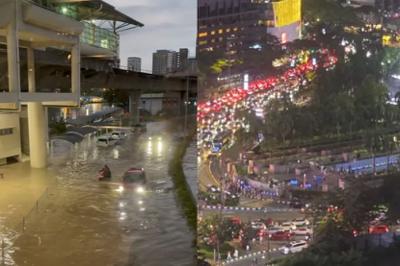 [V] Aliran trafik KL langsung tak bergerak akibat hujan lebat, banjir kilat